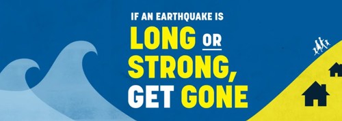 If you live near the coast or inside a tsunami evacuation zone you need to have a plan in place. If you feel a big earthquake that is long (goes for a minute or longer) or strong (it’s hard to stand up), or a weak, rolling earthquake shaking for a minute or more, you should self-evacuate. Go immediately to higher ground or as far inland as possible as soon as the shaking stops. If you live outside the tsunami evacuation zone you don’t need to move.